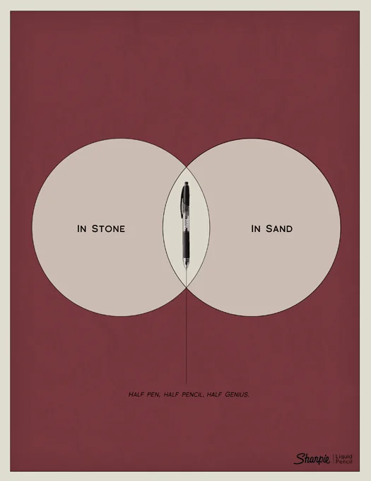 THE WHAT: Use the ubiquitous and old fashioned Venn Diagram to share the duplicitous nature of Sharpie's new futuristic pencil. (Copy & Art Direction)